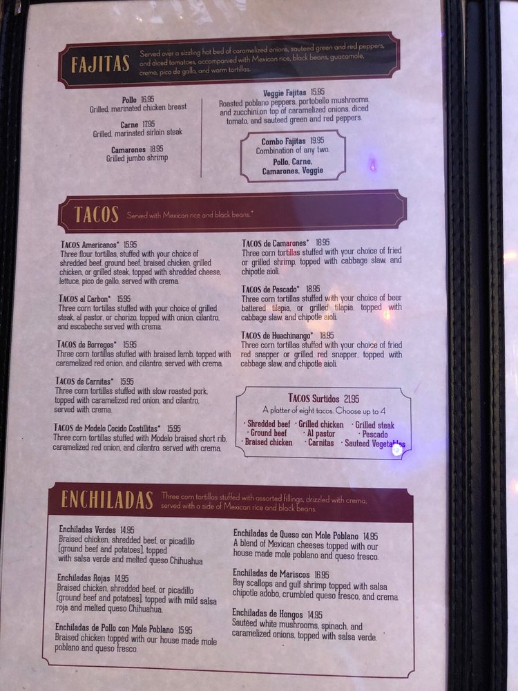 Two Corn Tortillas rolled with assorted fillings. Served with Mexican Rice and Black Beans. Bay Scallops, Gulf Shrimp, Adobo Chipotle Sauce, Melted Queso Chihuahua